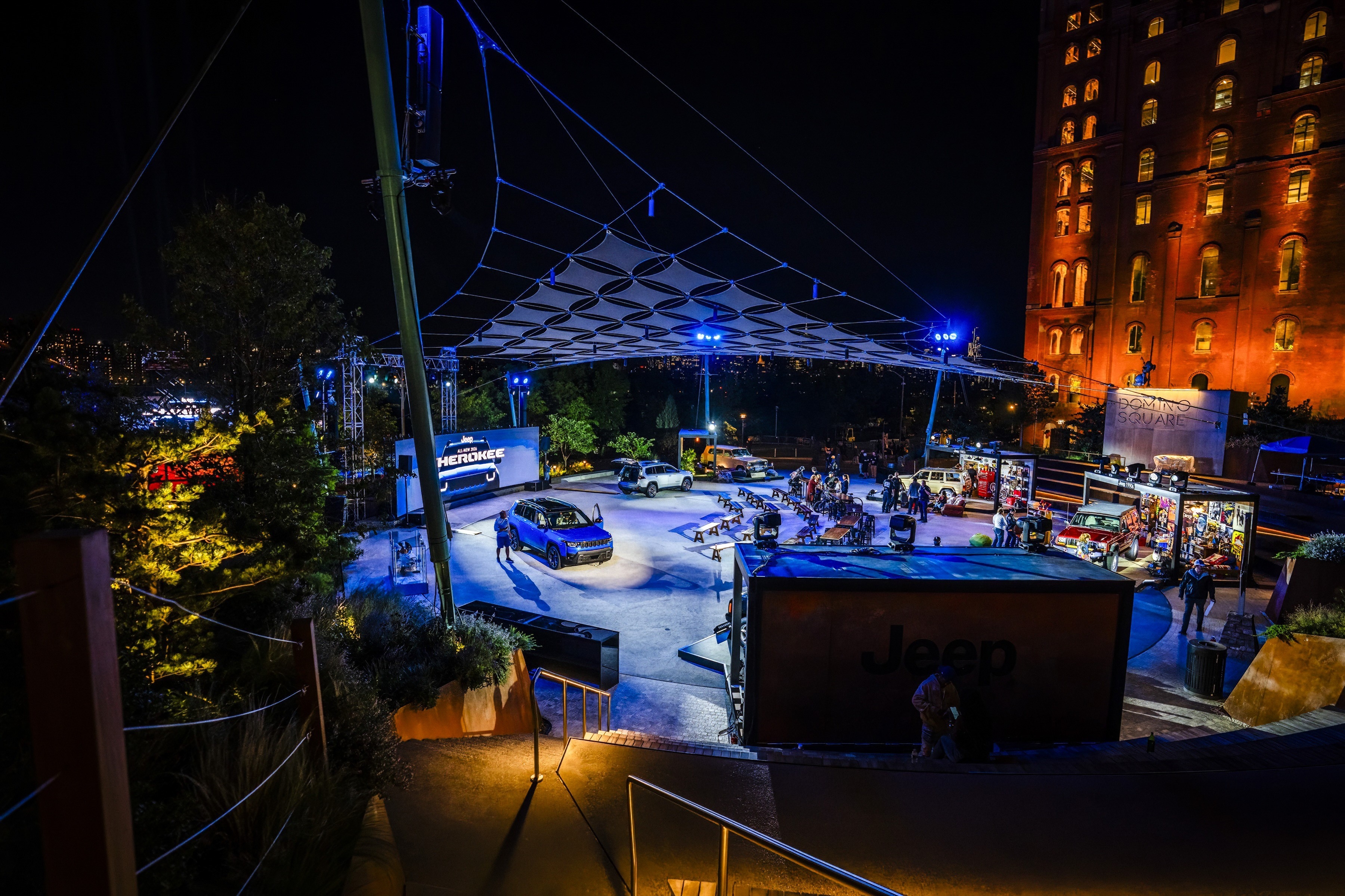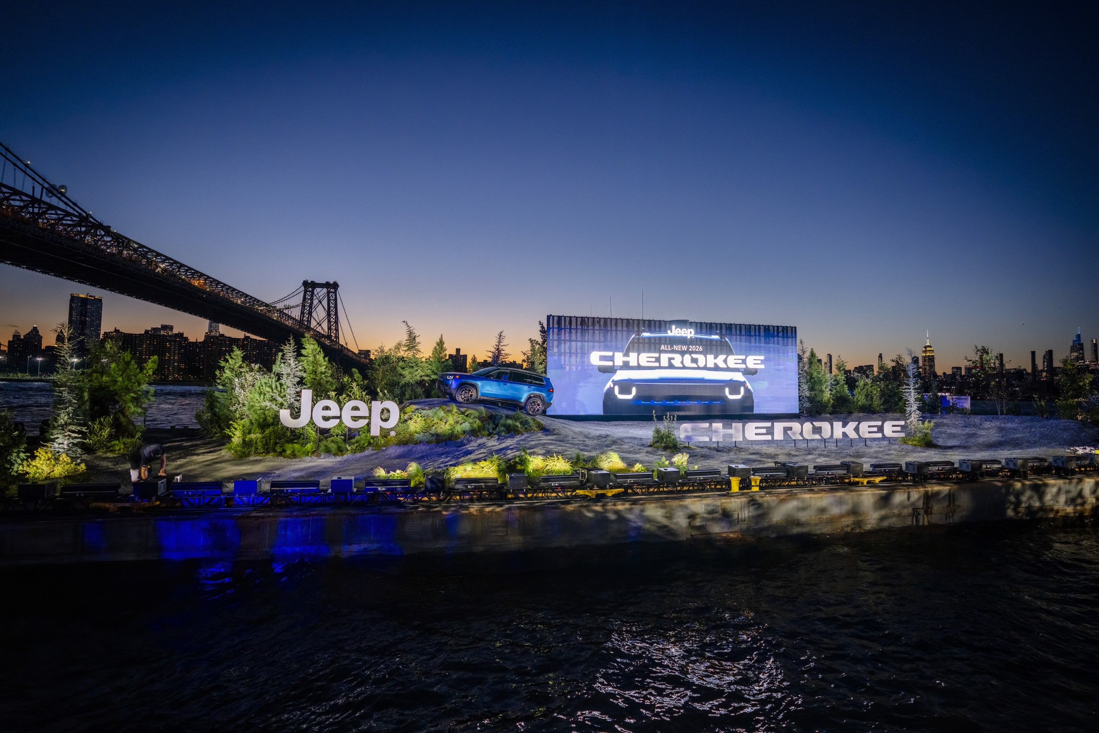 BROOKLYN, NY - When experience marketing agency George P Johnson (GPJ) needed a production partner capable of executing their vision for the 2026 Jeep Cherokee reveal, they turned to 4Wall Entertainment. The Jeep 4x4 City Camp Experience, which took place on August 21-22 at Brooklyn's Domino Park, required coordinating three separate performance venues (including a custom stage built on a barge in the East River) while a hurricane threatened to derail the entire production.