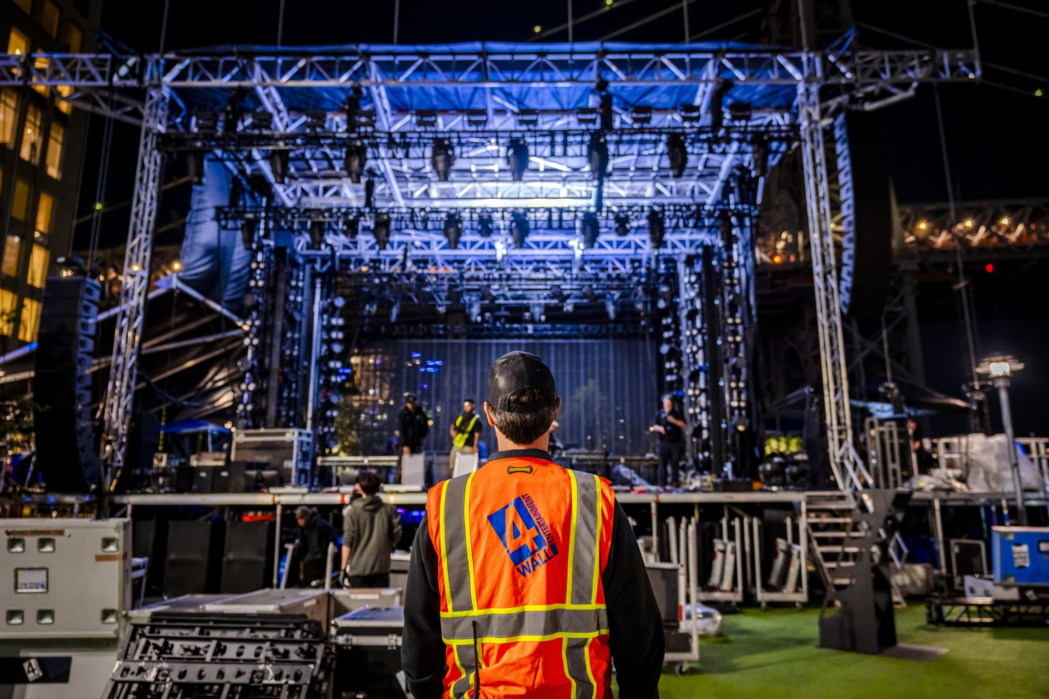 The only significant damage? A couple of pop-up tents and one 85-inch display monitor that got caught by the wind. Most of the setup, from stage assembly to hanging pre-rigged truss, speaker arrays, and LED walls, still happened in a single day.